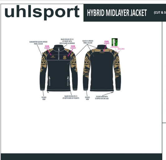 Uhlsport CRFC Padded Hybrid Jacket Black / Gold Crest - Adult